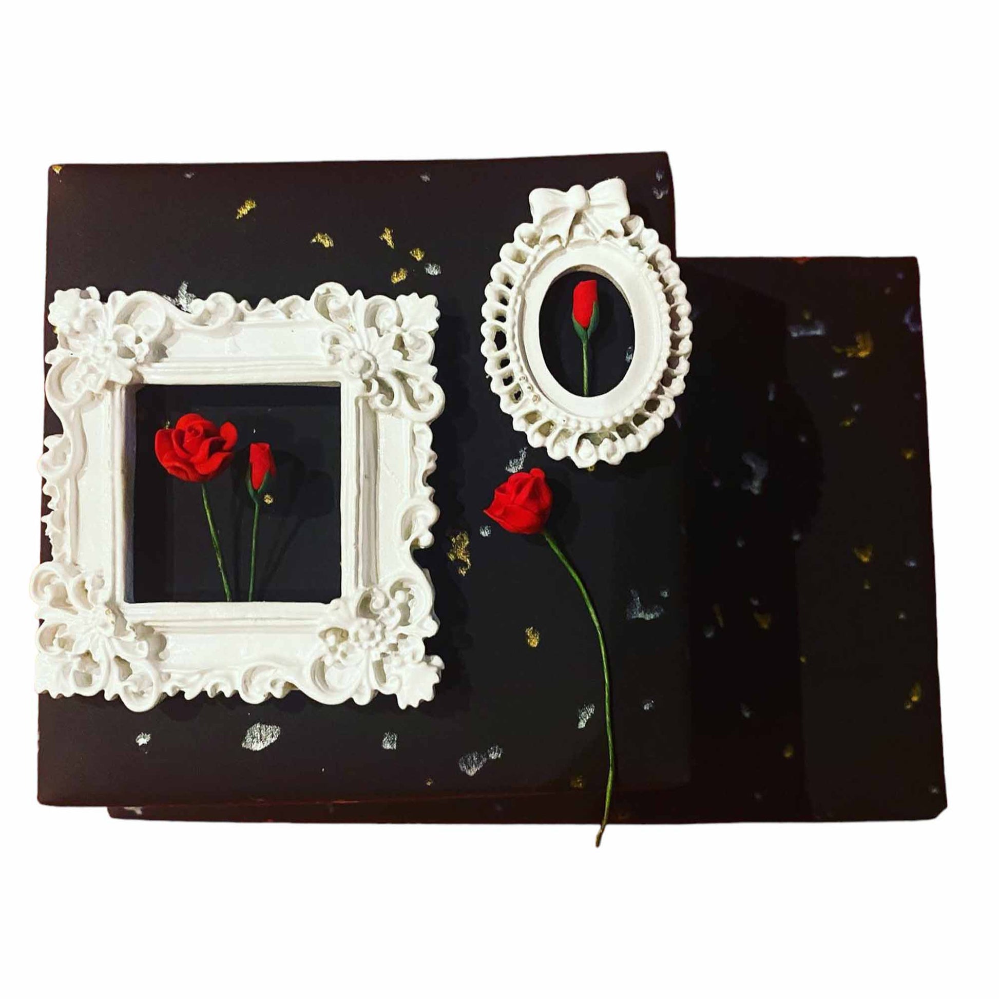 The package comes ready to assemble. Each component has a clear double sided tape attached, simply stick them on your package.