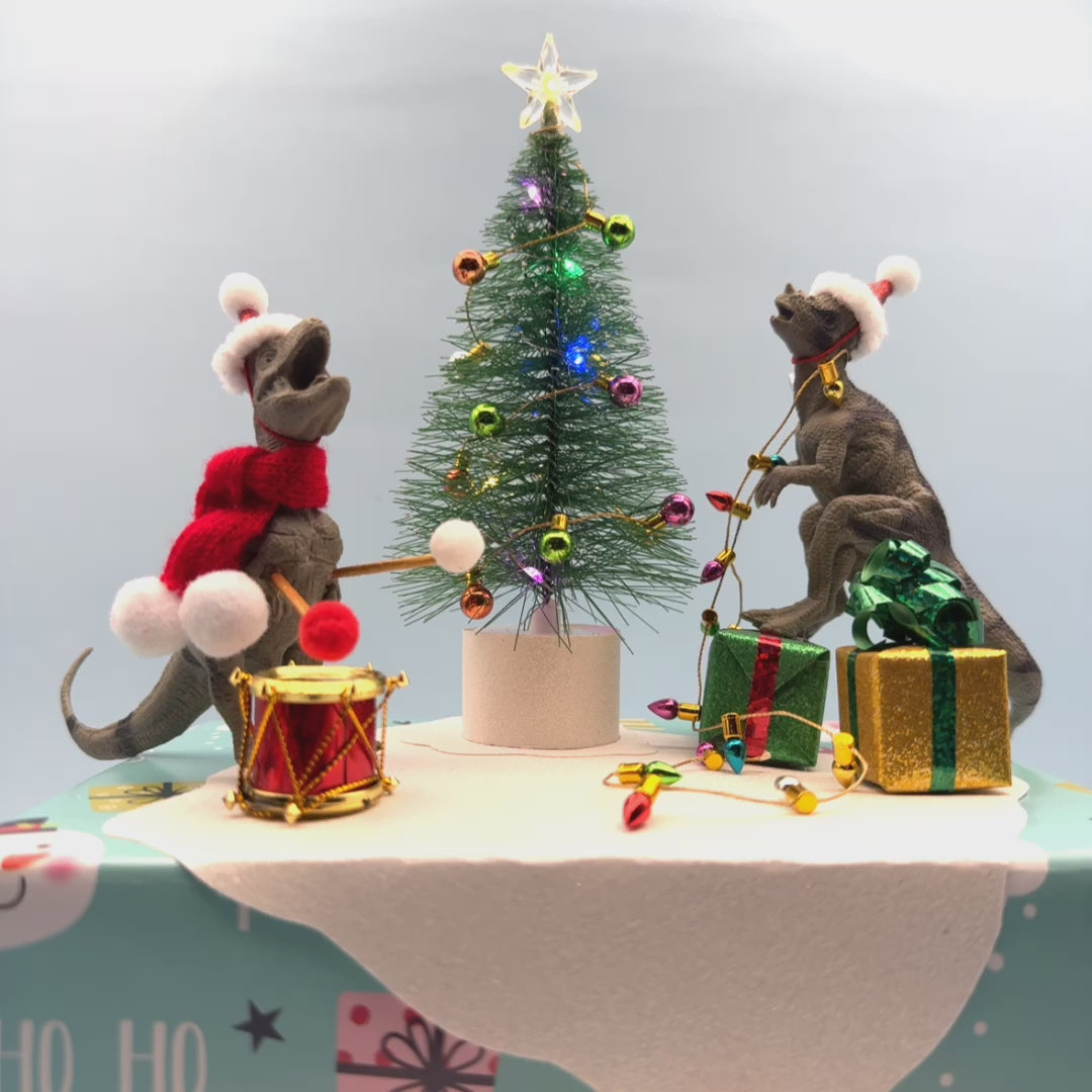 The LED tree and twinkling lights evoke the magic of the season, while the scarves and Santa hats bring that extra touch of merriment. Make your presents a delightful part of the holiday tradition with Tree-Rex and let the kids in all of us celebrate the season with glee! ππ